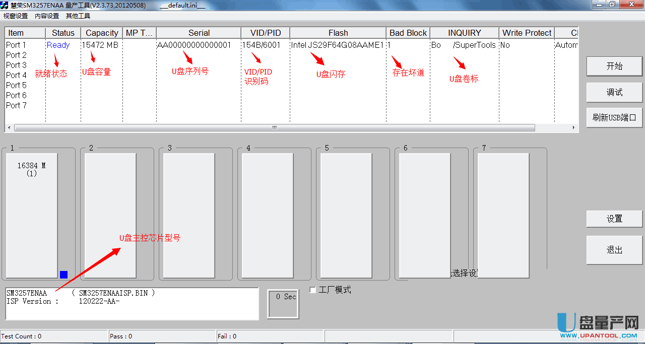插入U盘,打开工具并点击主界面的刷新USB端口,这样你的U盘就被量产工具找到了。