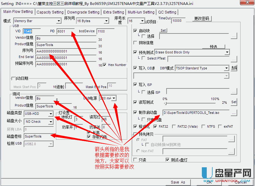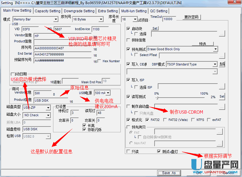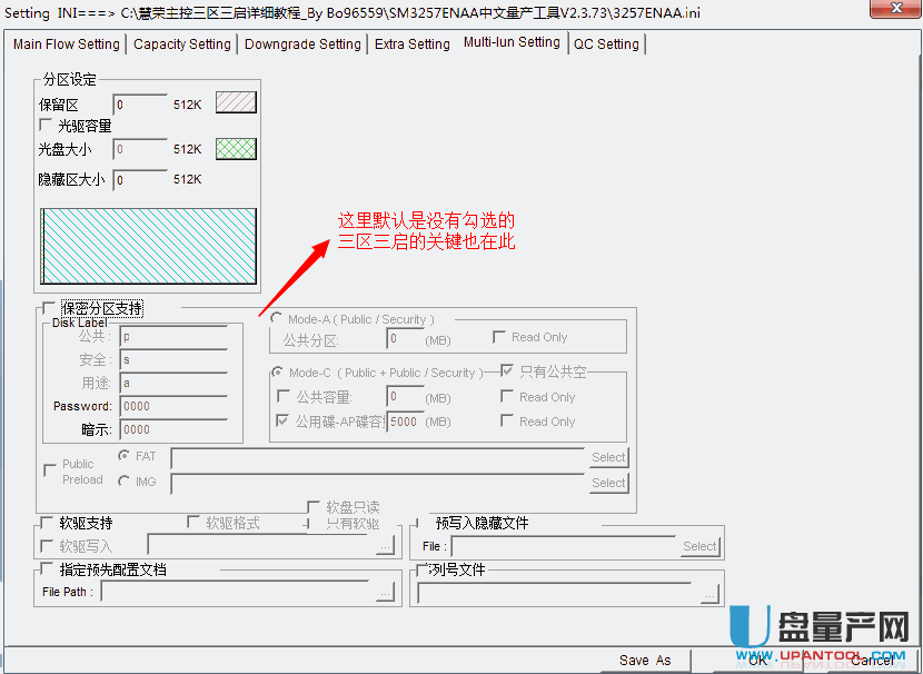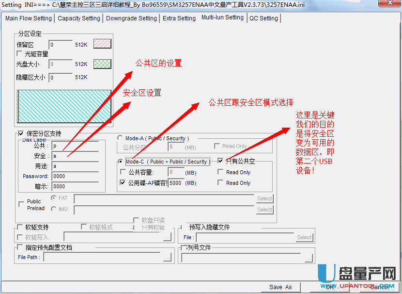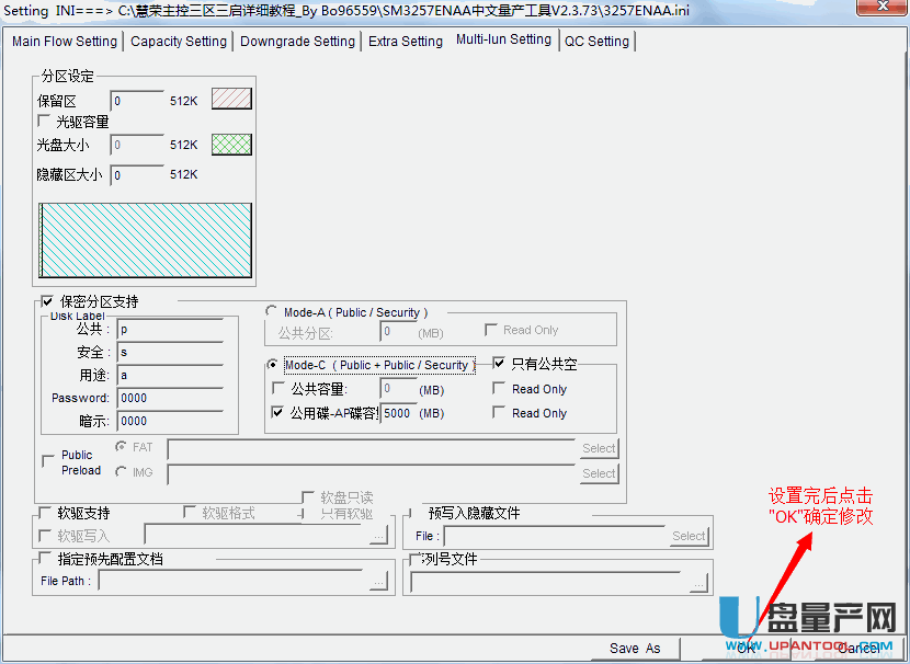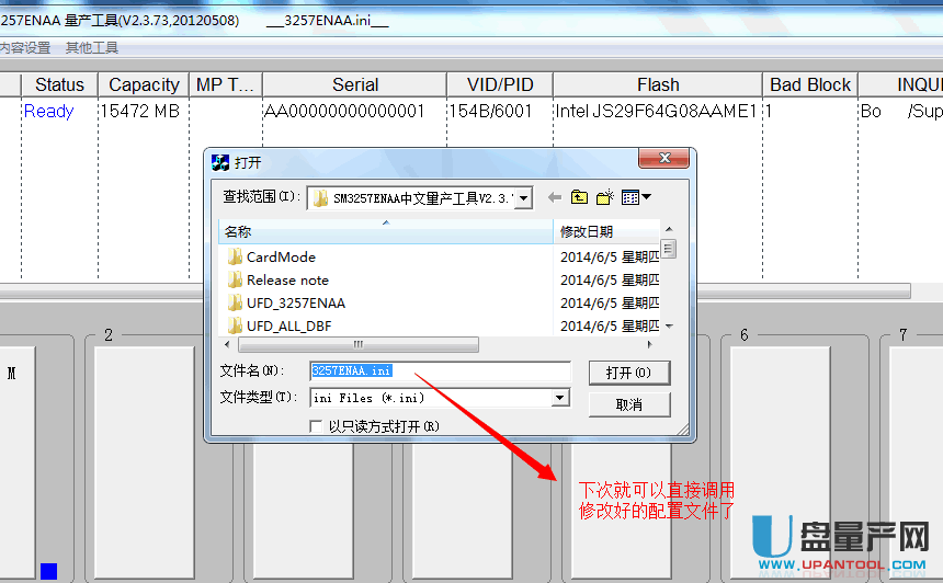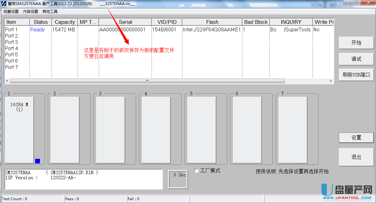 保存配置文件,你可以改名配置文件的名称,以后可以直接使用,不需要每次量产都设置了。