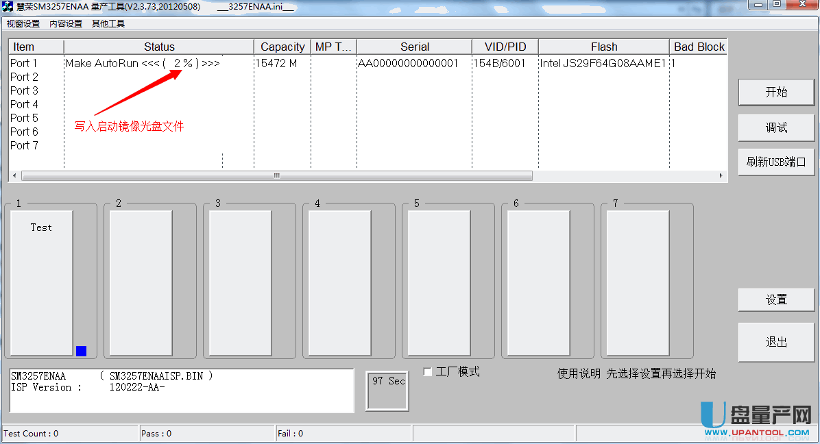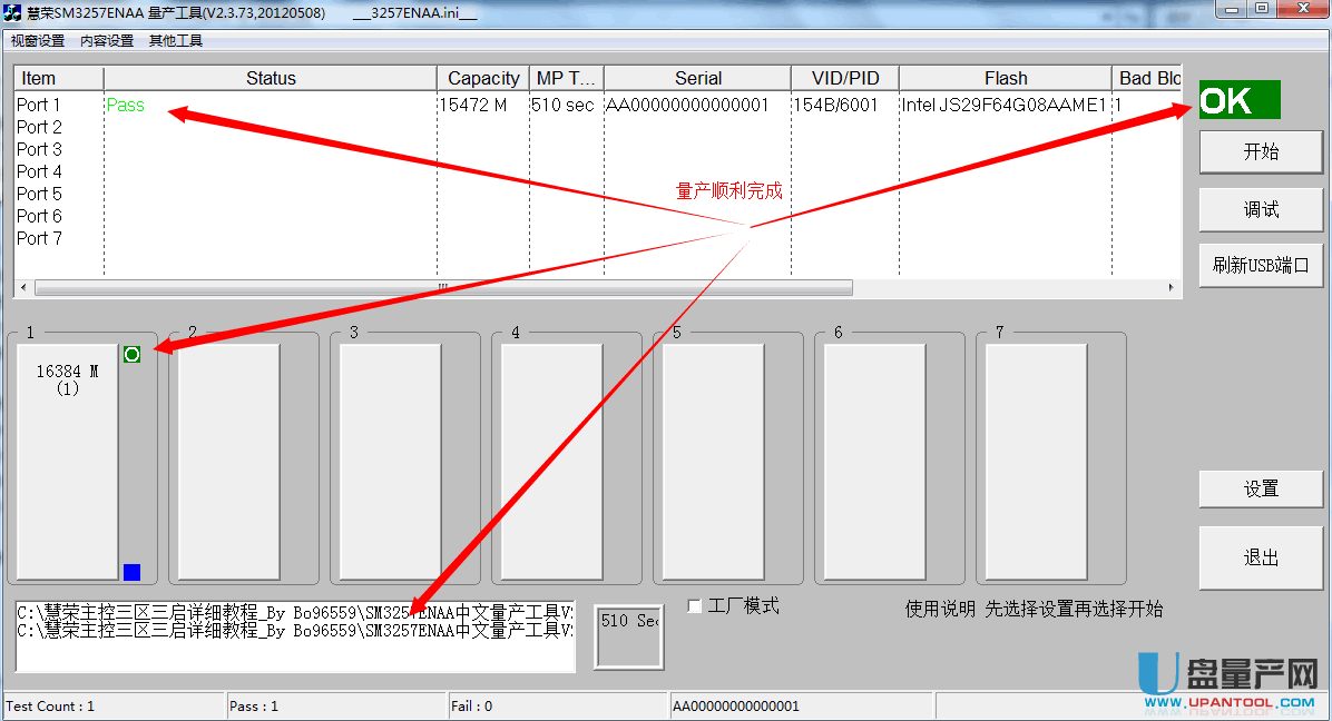 量产成功后会显示绿色的pass OK表示顺利量产成功。